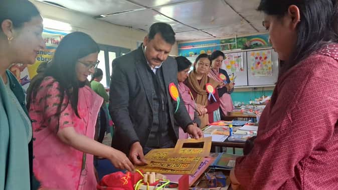 राजकीय केंद्रीय प्राथमिक पाठशाला कोटा आगे के परिसर में स्कूल रेडीनेस मेले में लगी प्रदर्शनी का