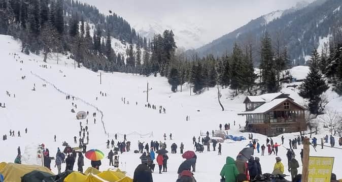 मनाली के सोलंग नाला में बर्फ के दीदार को पहुंचे पर्यटक।-संवाद