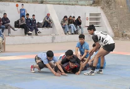 कुल्लू में एबीवीपी की खेलकूद प्रतियोगिता के कबड्डी मैच में दमखम दिखाते खिलाड़ी।-संवाद