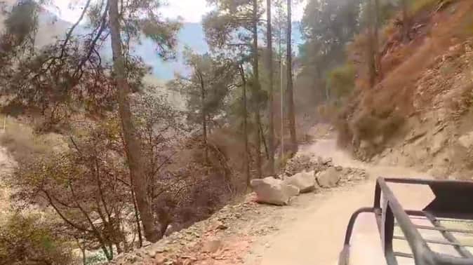 सैंज-न्यूली-शैंशर मार्ग बदहाल आपदा के बाद से बस सेवा शुरू नही हो पाई है।-संवाद