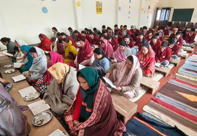 ब्रह्मर्षि मिशन स्कूल जरड़ में सुंदरकांड के दौरान पाठ करते शिक्षक, अभिभावक व विद्यार्थी। -स्