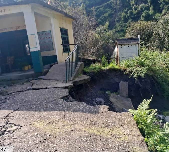 राजकीय प्राथमिक विद्यालय कड़ौन भवन के साथ हुआ भूस्खलन। -जागरूक पाठक