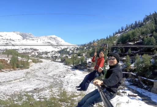कुल्लू के मनाली के समीप जिप राइडिंग का लुत्फ उठाते पर्यटक।-संवाद