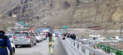 लाहौल में कोकसर के समीप लगा पर्यटक वाहनों का लंबा जाम।-संवाद