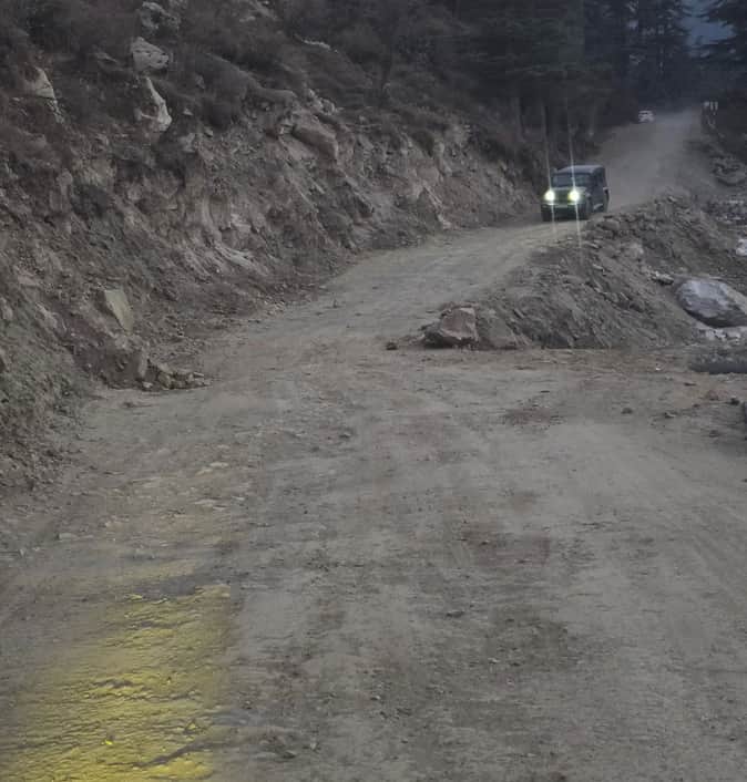 छेत के पास अस्थायी तौर पर तैयार किया गया एनएच-305 ---संवाद।