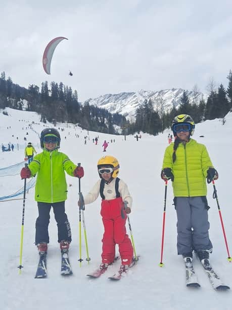 मनाली के सोलंग नाला की स्की ढलान पर स्की करते पर्यटको के बच्चें।-संवाद