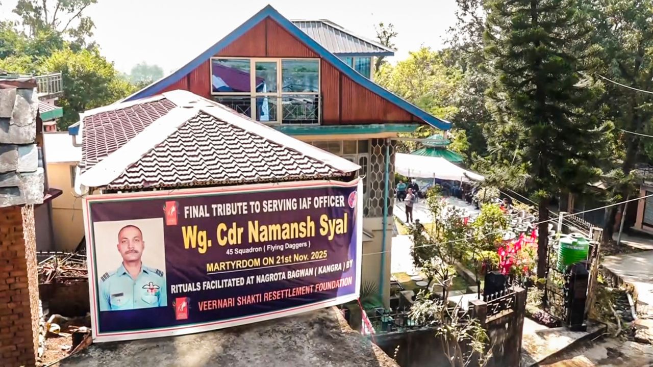 #WATCH | Himachal Pradesh | Visuals from the residence of Wing Commander Namansh Syal in Patiyalkar, Kangra.