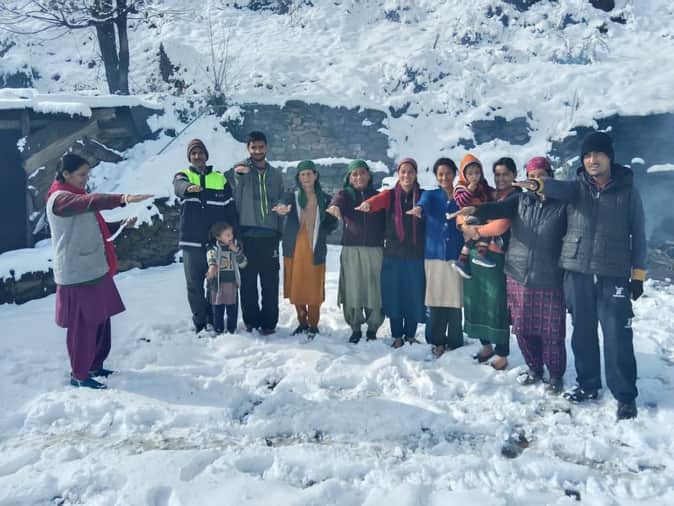 जिले के ऊपरी क्षेत्र में बर्फबारी के बीच बालिका दिवस पर शपथ लेते हुए लोग। स्त्रोत- विभाग