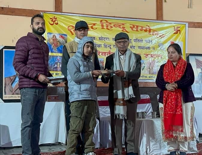 जोगिंद्रनगर में आयोजित हिंदू सम्मेलन में विभूतियों को सम्मानित करते अध्यक्ष। स्रोत संगठन