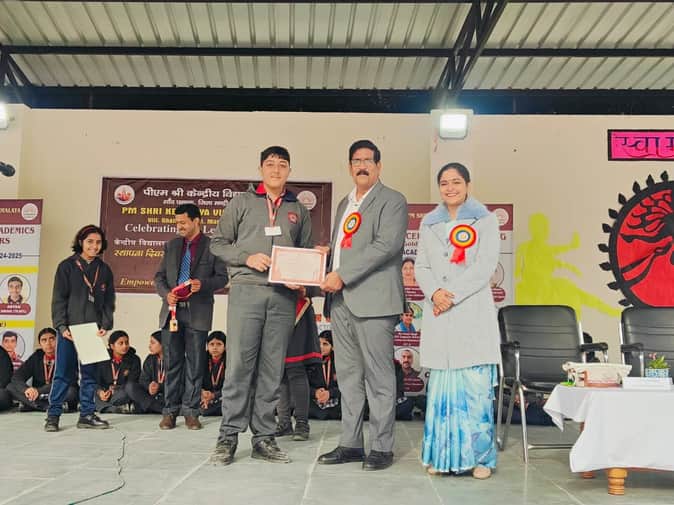 केंद्रीय विद्यालय संगठन के स्थापना दिवस अवसर पर संधोल में मेधावी विद्यार्थी को सम्मानित करते हु