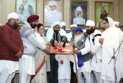 मंडी के रामनगर स्थित गुरूद्वारा में धार्मिक गुरू की वाणी जप जी साहिब एलबम का विमोचन करते अतिरि