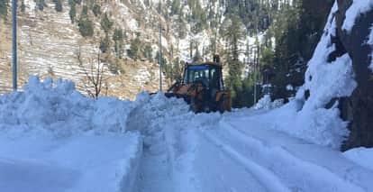 सराज घाटी में जंजैहली-रायगढ़ सड़क मार्ग पर बर्फ हटाती मशीनरी।स्त्रोत- विभाग