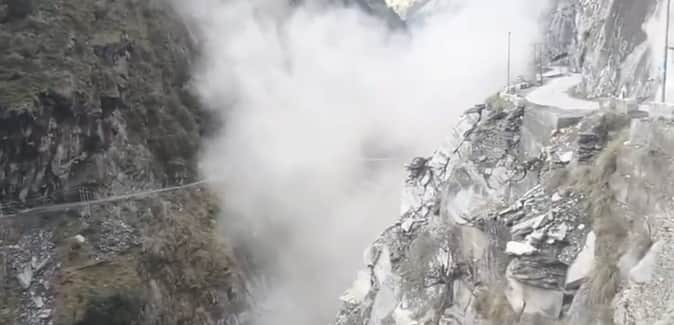 चंबा सिंयुर पुल के पास भूस्खलन के चलते उठता धुंए का गुब्बार