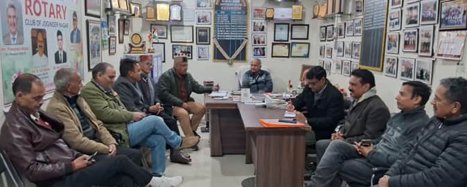रोटरी क्लब कार्यालय जोगिंद्रनगर में बैठक करते रोटेरियन पदाधिकारी व सदस्य। स्रोत संगठन