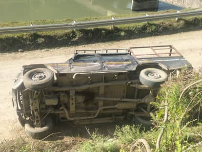 नहर किनारे अनियंत्रित होकर पलटी बोलोरो कैंपर गाड़ी: स्त्रोत संवाद