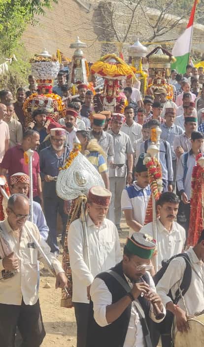 द्रंग क्षेत्र के बुराड़ी मेला में शिरकत करते क्षेत्र के देवी-देवता व देवलु। स्रोत जागरूक पाठक