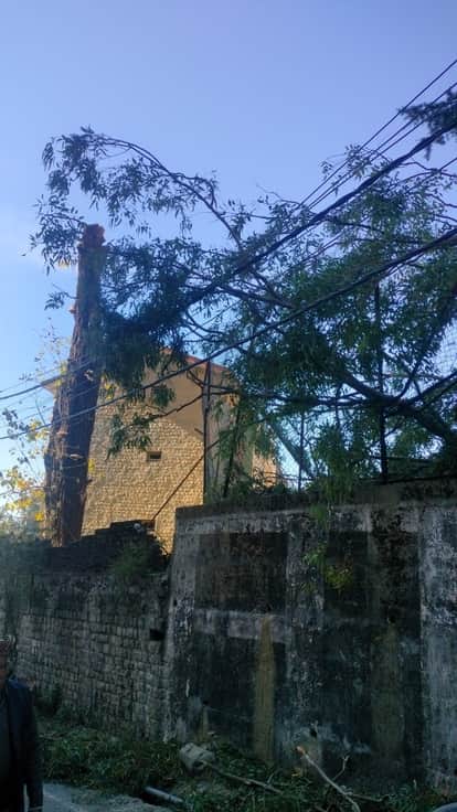 जोगिंद्रनगर न्यायालय परिसर के समीप बिजली तारों में गिरा पेड़। स्त्रोत- जागरूक पाठक