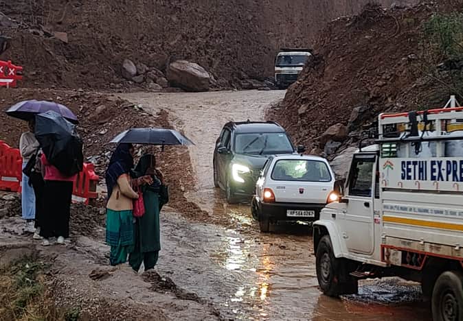 Mandi News: बारिश से नारला-मंडी फोरलेन पर फंसे वाहन, मशीनरी से निकाला