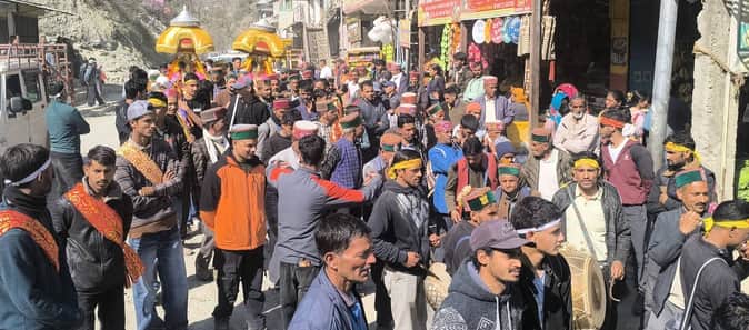 बालीचौकी पहुंचने पर अपने देवलुओं के साथ आराध्य देवता कोटलु मार्कंडेय। संवाद