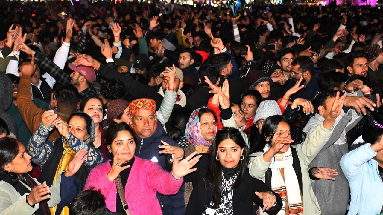 नए साल का जश्न मनाने के लिए पहाड़ों की रानी शिमला में हजारों की भीड़ उमड़ी है। देश-विदेश से आए सैलानियों के साथ ही हजारों की संख्या में युवाओं ने डीजे की धुनों पर नए साल का स्वागत किया। रात 12:00 बजते ही युवाओं ने शोर मचाकर एक दूसरे को वर्ष 2026 के आगमन की बधाइयां दीं। इस दौरान आतिशबाजी भी हुई।