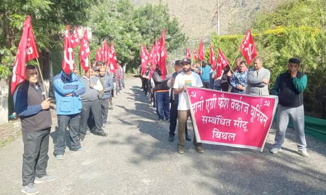 रामपुर बुशहर। अडानी एग्री फ्रेश वर्कर यूनियन के मजदूरों का विरोध प्रदर्शन नौ दिन से जारी है। प्रबंधन की ओर से श्रम कानून लागू न होने और सुरक्षा कर्मचारियों को बाहर निकालने पर मजदूर रोष जता रहे हैं। यूनियन ने चेताया है कि यदि जल्द मांगों को पूरा नहीं किया गया, तो उग्र आंदोलन किया जाएगा, जिसके लिए प्रबंधन जिम्मेदार होगा। अडानी एग्री फ्रेश वर्कर यूनियन संबंधित सीटू के बेनर तले मजदूरों ने वीरवार को बिथल में श्रम कानूनों को लागू करने और सुरक्षा कर्मियों को गैरकानूनी तरीके से बाहर निकालने की साजिश के खिलाफ अडानी स्टोर के बाहर विरोध-प्रदर्शन किया। इस दौरान सीटू शिमला जिला अध्यक्ष कुलदीप सिंह, लूहरी हाइड्रो प्रोजेक्ट वर्कर यूनियन के अध्यक्ष राजपाल भंडारी, सचिव अजय शर्मा, यूनियन के अध्यक्ष सुनील जिष्टू और महासचिव सुनील ने कहा कि मजदूरों की मांगों को लेकर प्रबंधन को एक माह पूर्व मांगपत्र दिया गया, जिसमें श्रम कानूनों को लागू करने और किसी भी मजदूर को नौकरी से बाहर न निकालने की मांग की गई थी, लेकिन प्रबंधन की ओर से मजदूरों की मांगों को अनसुना किया जा रहा है। मजदूर मांग कर रहा है कि श्रम कानून के अनुसार मजदूरों को पूरे माह का वेतन दिया जाए। यदि सुरक्षा कर्मियों के पूरे माह के वेतन की गणना की जाए, तो न्यूनतम वेतन भी नहीं दिया जा रहा है। मजदूरों से 12 घंटे ड्यूटी ली जा रही है, परंतु वेतन 8 घंटे का दिया जा रहा है। कानून के अनुसार 8 घंटे के बाद ओवरटाइम का दोगुना वेतन मिलना चाहिए, जो नहीं दिया जा रहा है। मजदूरों को कानून के अनुसार जो छुट्टियां मिलनी चाहिए वो भी नहीं दी जा रही। हिमाचल प्रदेश में सेवानिवृत्ति की आयु 58 वर्ष है, लेकिन अडानी सीए स्टोर में सुरक्षा कर्मी को 45 वर्ष में ही जबरदस्ती सेवानिवृत्त किया जा रहा है। मजदूरों को तबादलों की धमकियां दी जा रही है। मजदूरों के साथ हो रहे शोषण के बावजूद श्रम विभाग रामपुर श्रम कानून को लागू करने में नाकाम साबित हो रहा है और इस मसले को लेकर मूकदर्शक बना हुआ है। यूनियन के नेताओं ने चेताया कि यदि शांतिपूर्ण प्रदर्शन के बाद भी प्रबंधन नहीं जागा तो उग्र आंदोलन किया जाएगा, जिसकी जिम्मेदारी अडानी प्रबंधन और प्रशासन की होगी। इस मौके पर कपिल, भजन, हरीश, जसबीर, चंदन, राकेश, मनोज सहित अन्य मौजूद रहे।