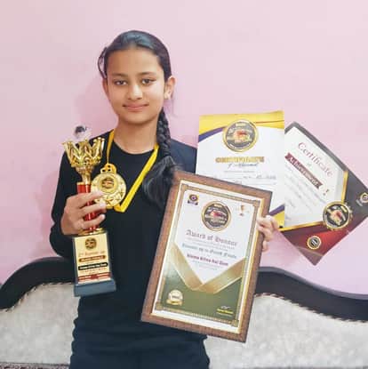 रामपुर की ऐविका राज भंडारी पदकों के साथ। संवाद