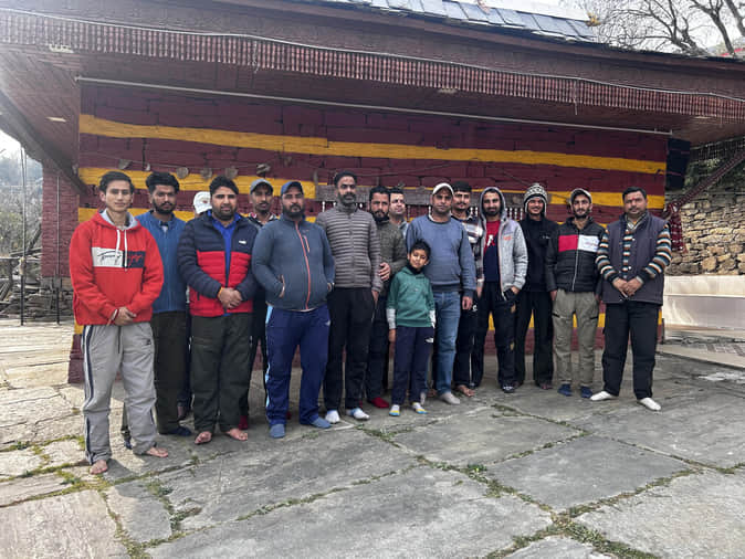 भगवती माता चेबड़ी के मंदिर में बैठक के दौरान मौजूद युवक मंडल के सदस्य। स्रोत: युवक मंडल