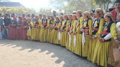 फाग मेले में पारंपरिक वेशभूषा में नाटी डालती महिलाएं। संवाद