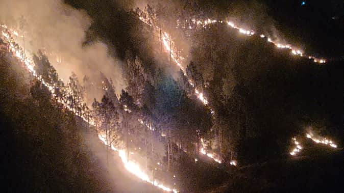 शिंगला हेलीपैड के साथ जंगल में फैली आग। स्रोत : जागरूक पाठक