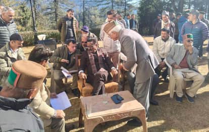 नारकंडा में ग्रामीणों की समस्याएं सुनते विधायक कुलदीप राठौर। स्रोत : पार्टी