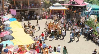 देलठ पंचायत के टूटू गांव में आयोजित ठिरशू मेले में ग्रामीणों ने देवताओं संग लगाई नाटी। संवाद