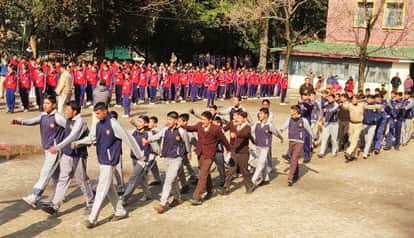 पदम छात्र स्कूल में गणतंत्र दिवस की परेड की तैयारियां करते स्कूली छात्र-छात्राएं। संवाद