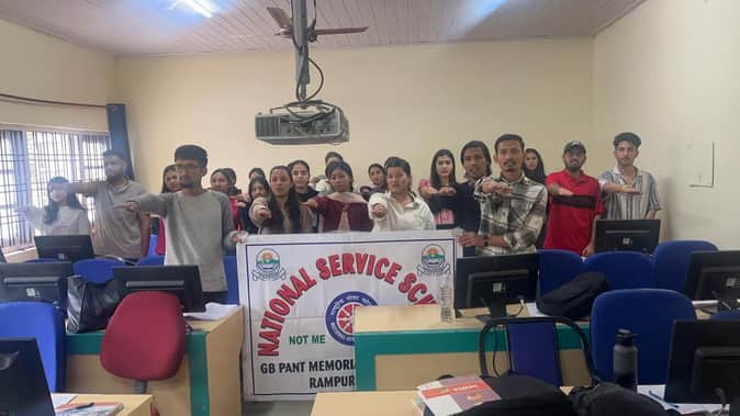 रामपुर कॉलेज में नशा न करने की शपथ लेते विद्यार्थी: प्रबंधन