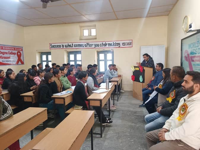 निरमंड कॉलेज में एड्स रोग बारे छात्र-छात्राओं को किया जागरूक। स्रोत : कॉलेज प्रबंधन