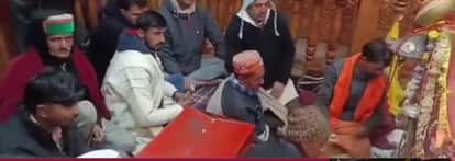 चूड़धार मंदिर में पूजा अर्चना करते कमेटी सदस्य व पुजारी। स्रोत: विडियोग्रेब