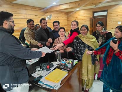 पांवटा साहिब (सिरमौर)। पांवटा साहिब नगर परिषद का एक प्रतिनिधिमंडल एसडीएम पांवटा से मिला। प्रतिनिधिमंडल ने कार्यकारी अधिकारी की बार-बार अवकाश पर चले जाने से विकास कार्य ठप होने की शिकायत की है। बिना बताए अवकाश पर जाने से बैठक निर्धारित नहीं हो पा रही है। समस्या को लेकर नगर परिषद अध्यक्षा, उपाध्यक्ष व पार्षदों ने एसडीएम पांवटा साहिब को ज्ञापन सौंपा है। पूरे मामले की गंभीरता को देखते हुए उचित जांच व कार्रवाई की मांग रखी है।