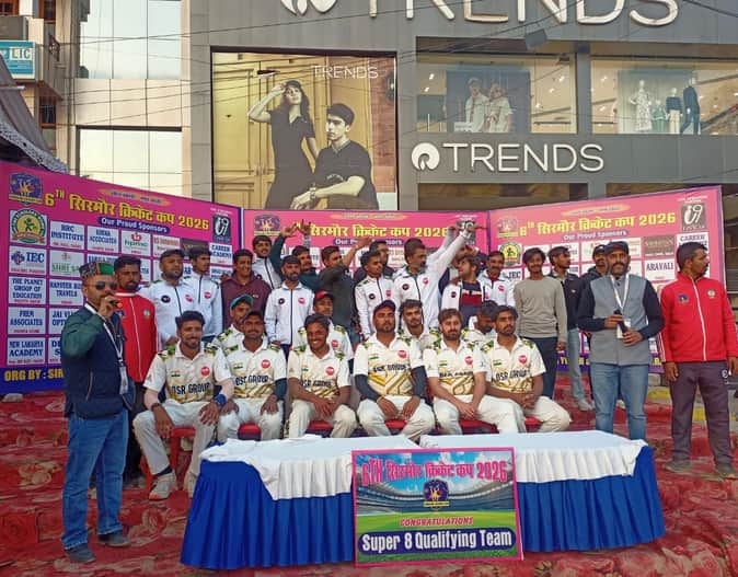 नाहन के चौगान मैदान में आयोजित क्रिकेट प्रतियोगिता में सुपर आठ में पहुंची डीएसआर ग्रुप इलेवन की