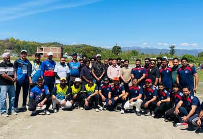 पांवटा साहिब में सिरमौर क्रिकेट कप के शुभारंभ पर मुख्यातिथि के साथ दोनों टीमों के खिलाड़ी। स्