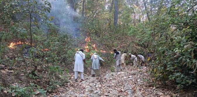 -वन विभाग की टीम ने स्थानीय लोगों के सहयोग से आग पर पाया काबू