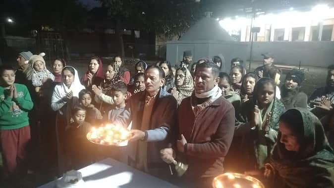 ददाहू के सती का बाग में गिरी गंगा की मंगल आरती में भाग लेते श्रद्धालु। संवाद
