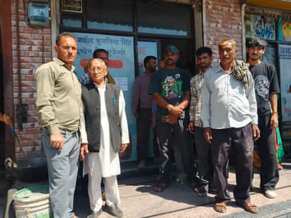 सिलिंडर गैस आपूर्ति न होने पर ददाहू गैस एजेंसी के बाहर खड़े लोग जो खाली हाथ लौटे। स्रोत : ग्राम