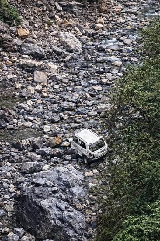 रोनहाट के पास खड्ड में दुर्घटनाग्रस्त वाहन। स्रोत : ग्रामीण