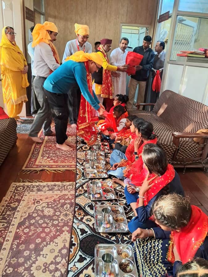 अष्टमी पर माता बाला सुंदरी मंदिर त्रिलोकपुर में पूजा अर्चना, हवन और कंजक पूजन करते हुए एसडीएम।