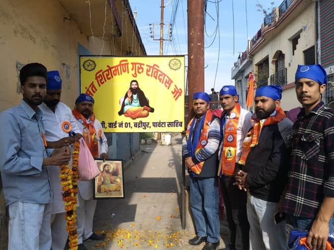 पांवटा साहिब (सिरमौर)। पांवटा साहिब में गुरु रविदास जी जयंती के अवसर पर एक शोभायात्रा निकाली गई। साथ में हरिजन बस्ती बद्रीपुर वार्ड नंबर-1 का नाम बदलकर संत शिरोमणि गुरु रविदास कॉलोनी रखा गया।
