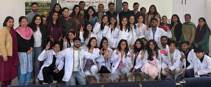 सोलन होम्योपैथिक मेडिकल कॉलेज में डॉ. हैनिमैन जयंति पर आयोजित कार्यक्रम के दौरान मौजूद विद्यार