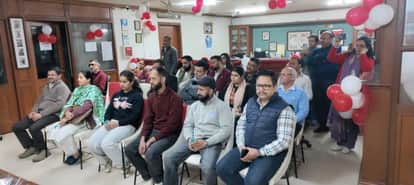 परवाणू अर्बन कोऑपरेटिव बैंक लिमिटिड की सोलन शाखा में 29वें स्थापना दिवस के अवसर मौजूद लोग। स्रो