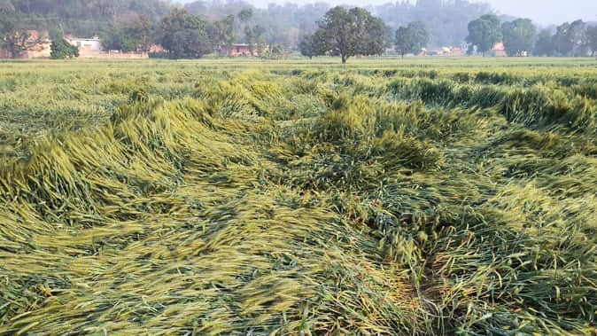 जिन स्थानों पर हवा से गेहूं जमीन पर बिछ गई है, वह मौसम खुलने पर स्वयं ठीक हो जाएगी। खेतों में पानी जमा न होने दें। यह बारिश अगेती और बछेती दोनों फसलों के लिए लाभकारी है।