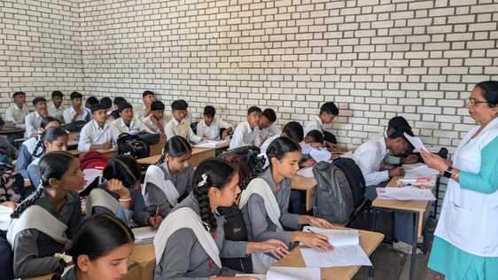 चनालमाजरा स्कूल में आईआरजी संस्था की स्वास्थ्य कार्यकर्ता स्कूली छात्रों को जागरूक करते हुए- सं