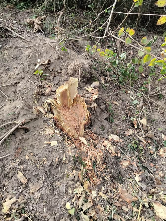बड़वार पंचायत के वराल गांव में खुदरो व मुस्तरका भूमि से काटे गए पेड़।संवाद