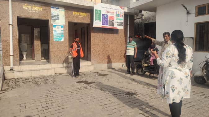 राष्ट्रीय स्वच्छता सर्वेक्षण के तहत शौचालयों की व्यवस्था की जांच करती टीम। संवाद